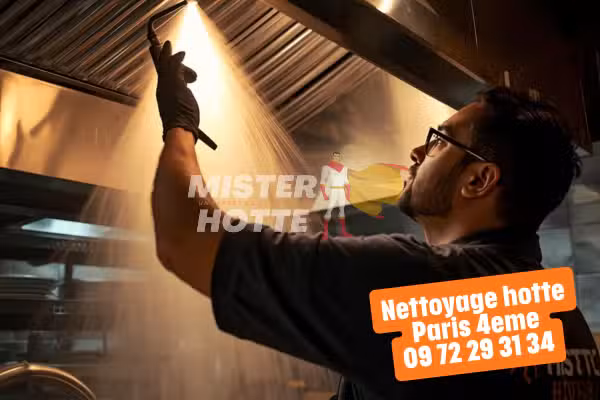 Expert en dégraissage de hotte dans le 4e arrondissement. Intervention dans les quartiers Marais, Île de la Cité, Île Saint-Louis, Hôtel de Ville, Place des Vosges. 400+ établissements accompagnés. Certificat conforme DDPP. Déplacement inclus.